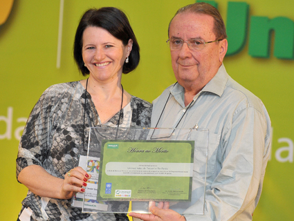 A assistente da área de Responsabilidade Socioambiental da Unimed VTRP, Jelci Southier, representou a Cooperativa na entrega da premiação