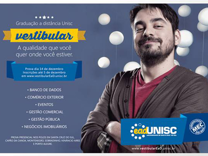 A Asscom, agência house da Universidade de Santa Cruz do Sul (Unisc), adotou como estratégia de comunicação o uso de celebridade e humor para comunicar o 1º Vestibular dos Cursos de Graduação a Distância da Instituição. Com o slogan “a qualidade que você quer onde você estiver”, o comercial possui versões de 30’’ (TV) e 60’’ (internet). Ele mostra os bastidores de uma gravação de comercial, fazendo disso a própria peça e potencializando o uso da imagem de Potter, diretamente ligada ao bom humor. A campanha conta ainda com links patrocinados, merchandising, rádio e mídia impressa.