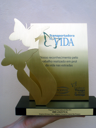 No dia 12 de dezembro, a Fundação Thiago Gonzaga e o Sindicato das Empresas de Transporte de Carga e Logística no Estado do Rio Grande do Sul (Setecer/RS) certificaram 35 empresas que participaram do Programa Transportadora da Vida. A premiação aconteceu no Auditório da Fiergs em Porto Alegre. A grande vencedora do ciclo 2012 no transporte de produto não perigoso foi a VBR Logística Ltda, já no segmento de produtos perigos a vencedora foi a Transportadora Henrique Stefani. Na verdade, este é o segundo Troféu Destaque Ouro alcançado pela VBR, pois em 2010 ela também já obteve a mesma conquista e em 2011, recebeu o troféu Prata.