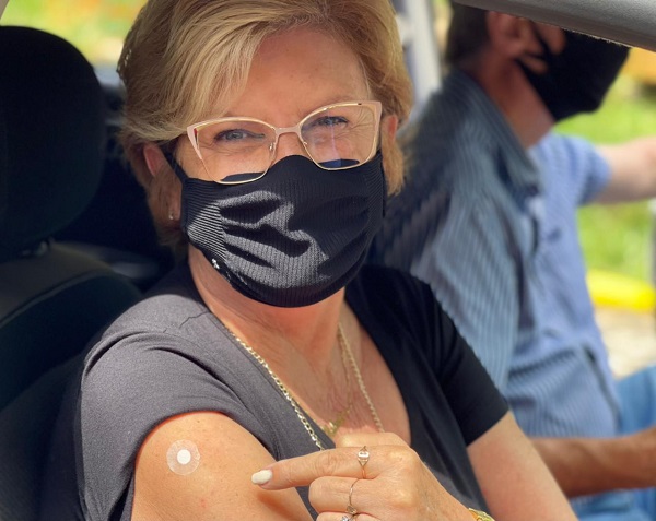 Na manhã desta sexta-feira, 19, a prefeita de Santa Cruz do Sul, Helena Hermany, com 73 anos, recebeu a primeira dose da vacina contra Covid-19 no Parque da Gruta, no modelo drive-thru. “Pedi a Deus que esse momento chegasse. Primeira dose de esperança. Espero que todos os santa-cruzenses possam tomar a vacina logo”, disse a prefeita.
